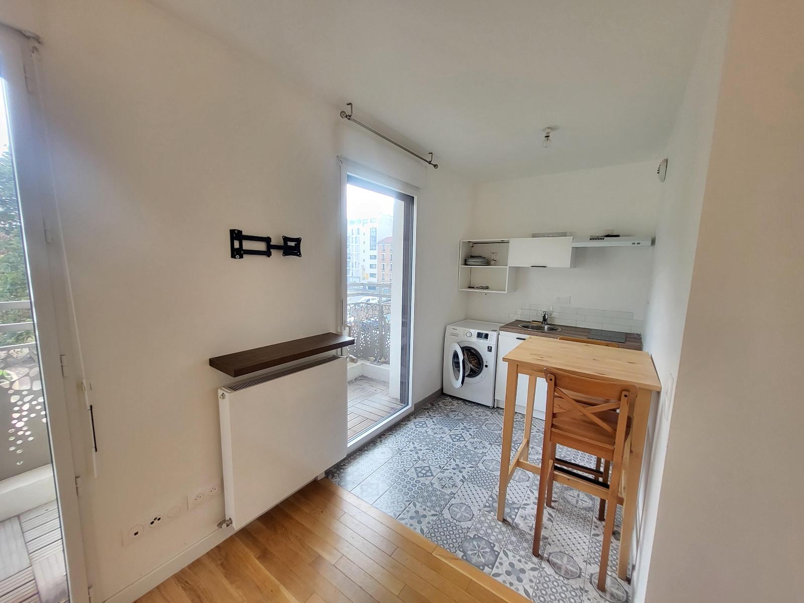 Beau studio de 24.21m², en bon état, au 2ème étage avec balcon de 3.72m², comprenant: entrée, pièce à vivre de 18.77m² avec placard et avec cuisine ouverte équipée et aménagée, et salle d'eau avec WC.