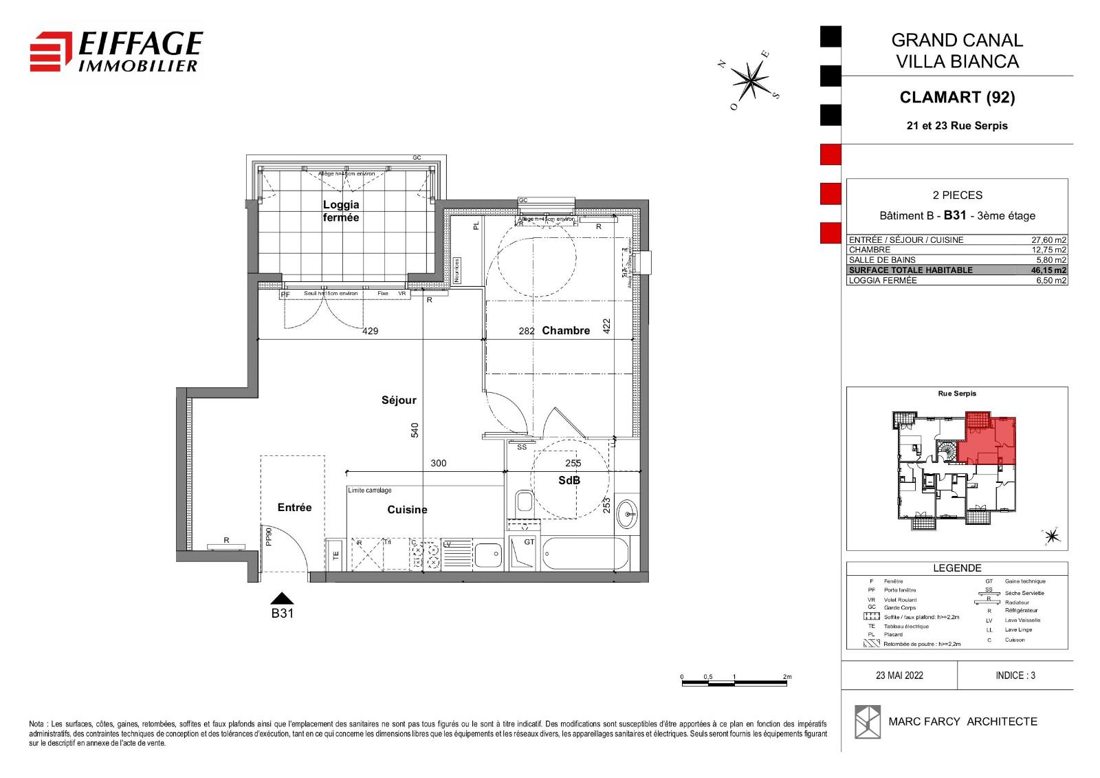 Surface habitable : 46.15 m²