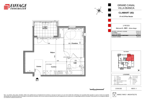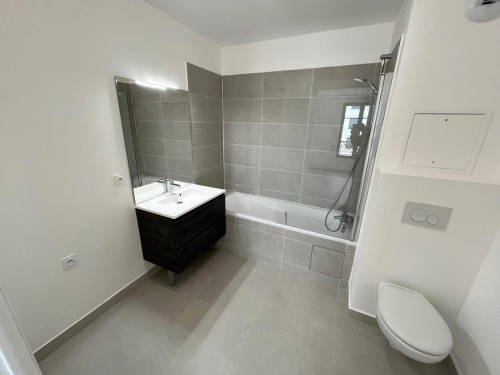 Beau et grand F2 de 46.15m², au 3ème étage avec loggia fermée de 6.50m², comprenant: entrée, séjour de 27.60m² avec cuisine ouverte équipée et aménagée, chambre avec placard, et salle de bains avec WC attenante.