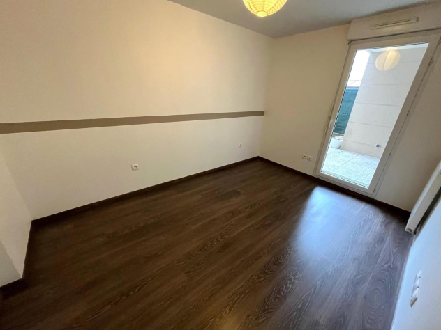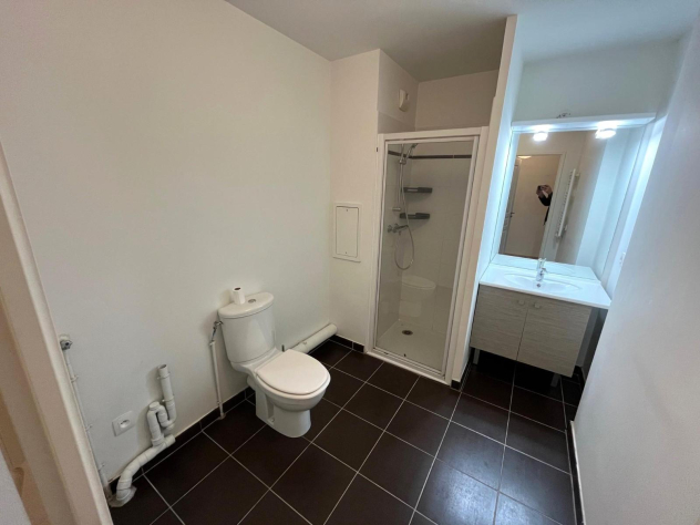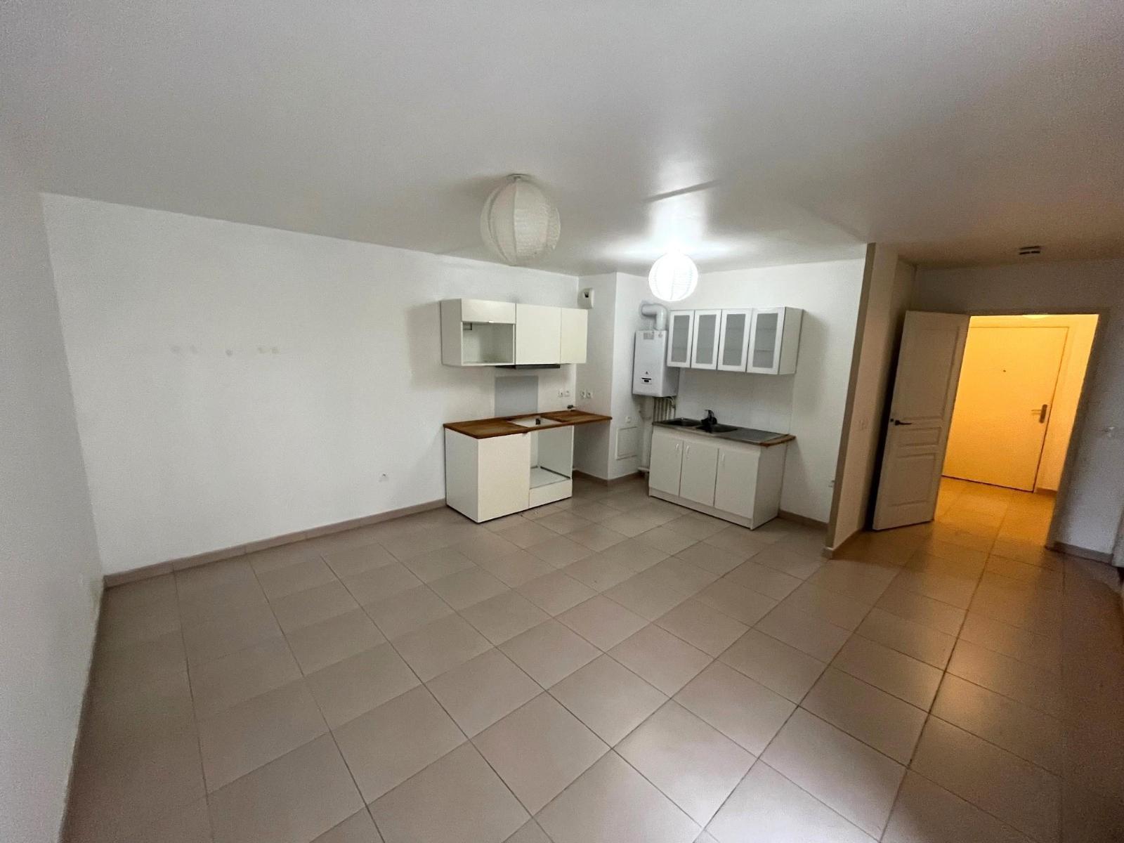 Beau F2 de 44.79m², en bon état, en rez-de-chaussée avec terrasse de 11.89m², comprenant: entrée, salle d'eau avec WC, séjour de 24.48m² avec cuisine ouverte équipée et aménagée, et chambre avec placard.