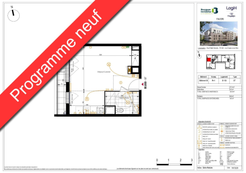 Beau et grand F1 neuf de 32.80m², au 1er étage avec terrasse de 4.80m², comprenant: entrée, salle d'eau avec WC, pièce à vivre de 27.90m² avec placard et kitchenette équipée.