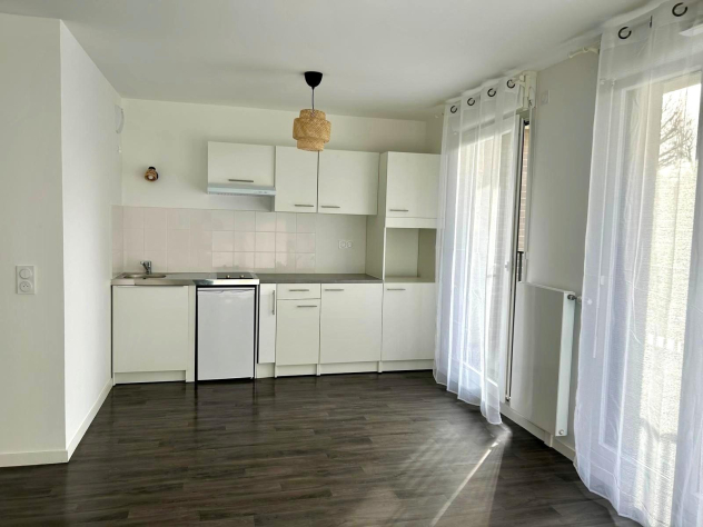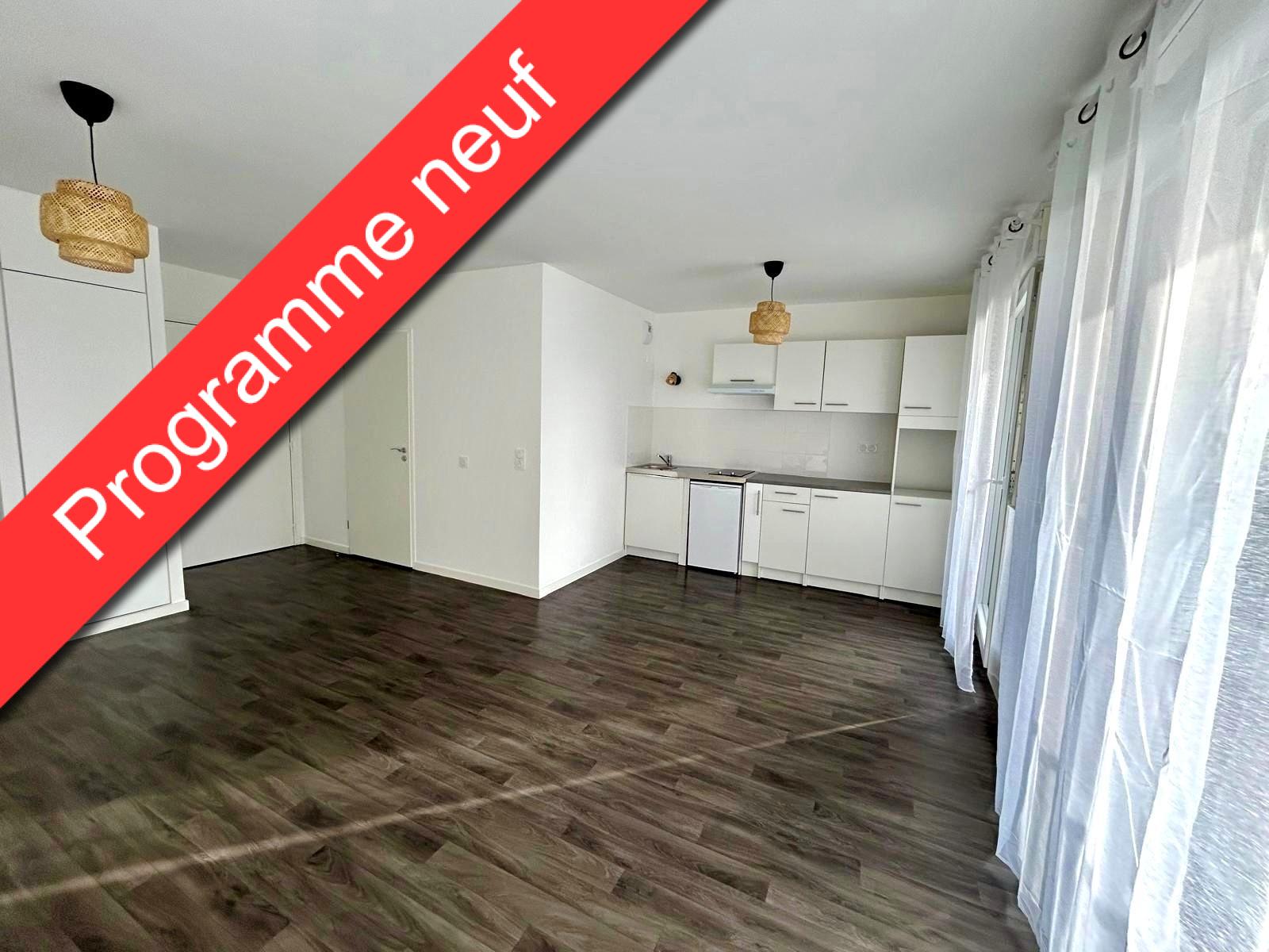 Beau et grand F1 neuf de 32.80m², au 1er étage avec terrasse de 4.80m², comprenant: entrée, salle d'eau avec WC, pièce à vivre de 27.90m² avec placard et kitchenette équipée.