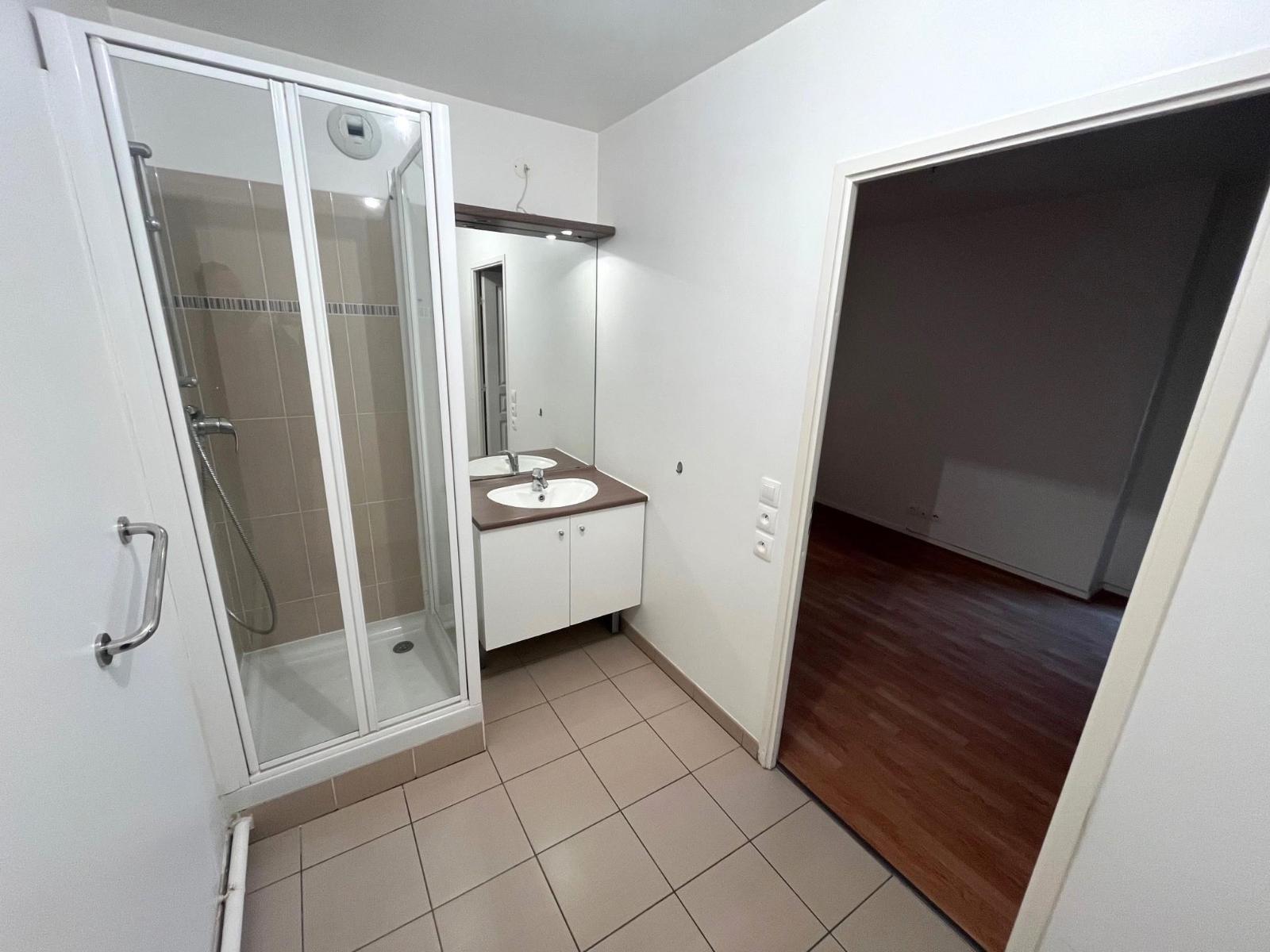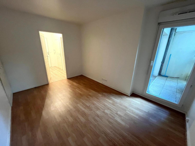 Beau F2 de 43.48m², en bon état, en rez-de-chaussée avec terrasse de 3.96m², comprenant: entrée, WC indépendant, séjour de 19.56m² avec cuisine ouverte équipée et aménagée, chambre avec dressing, et salle de bains.