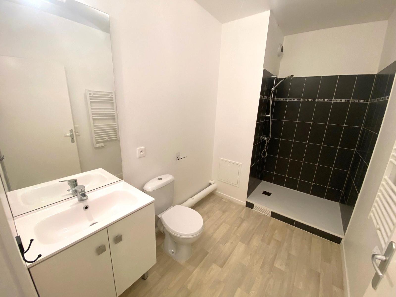 Beau F2 de 39.96m², en bon état, en rez-de-chaussée avec terrasse de 11.89m², comprenant: entrée, chambre, salle d'eau avec WC, séjour de 19.29m² avec cuisine ouverte aménagée.
