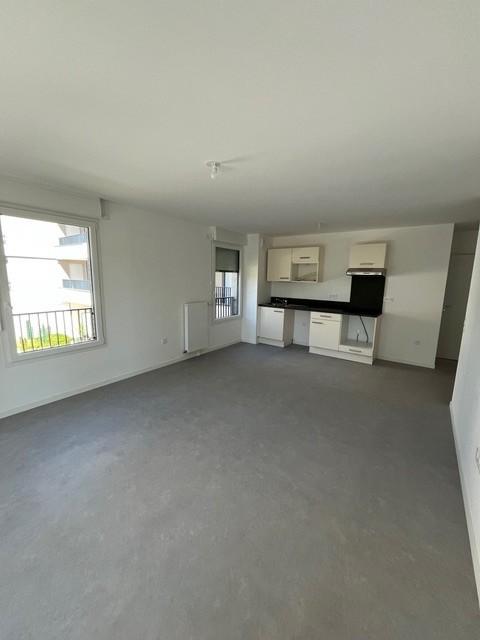 Beau F3 neuf de 59.70m², au 1er étage avec balcon de 14m², comprenant: entrée, WC indépendant, salle de bains, chambre, séjour de 24m² avec cuisine ouverte équipée et aménagée, et chambre avec placard.